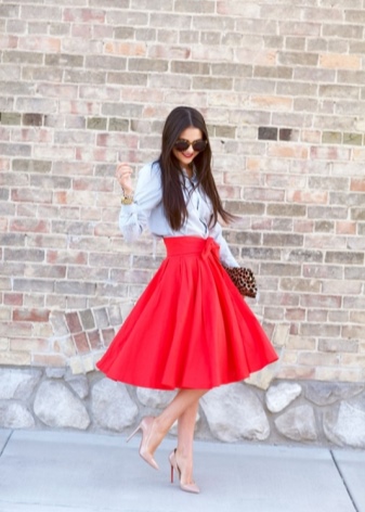 - A white top, milk stilettos and a dark skirt in a colorful pattern are a ready-made look for a fashionable bow.