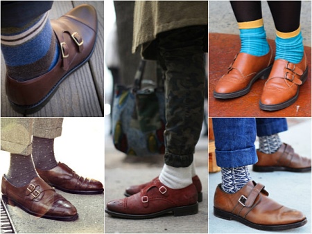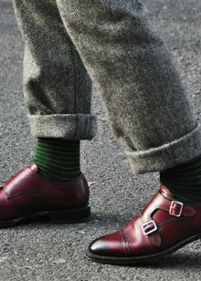 Casual style also allows you to wear monk. Wide-shaped suede shoes or color-soled models go well with trousers. Casual suggests wearing shoes with two buckles (double strap monk), leaving them unfastened.