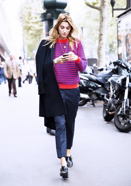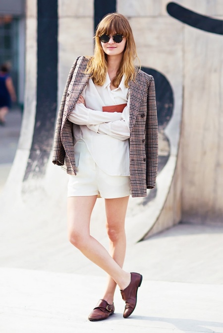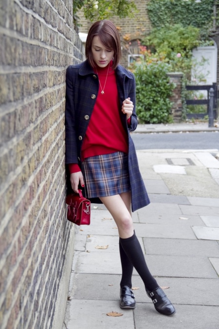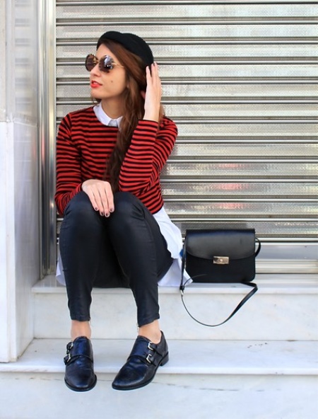 Female models are able to combine with skirts and dresses of various lengths. Wardrobe items of fitted silhouettes (jackets, turtlenecks, blouses) look great with monks.
