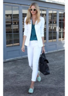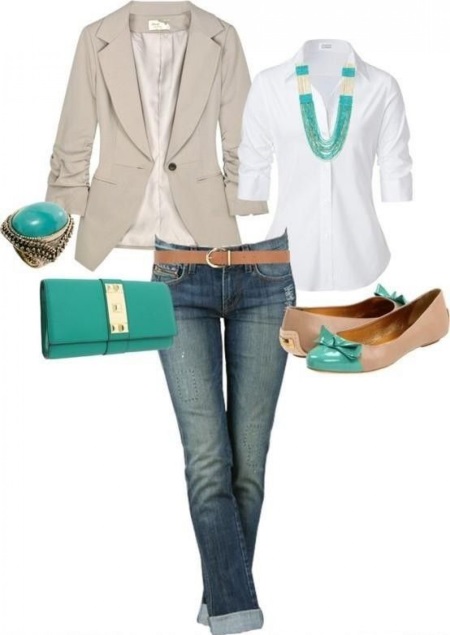 Mint shoes look very nice with, in combination with jeans, boyfriends and a smart white blouse. A fitted jacket will emphasize the elegance of the figure. Clutch and jewelry will be a luxurious completion of the everyday look.
