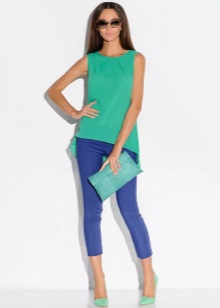 Mint shoes and girls with a non-standard figure should not be excluded from your wardrobe. An elongated blouse with a nice floral print looks great with capri shoes and mint shoes.