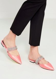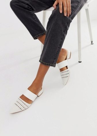 Mules are shoes without wedges with open heel. Such shoes are presented in several varieties, for each of which it is necessary to choose certain items of clothing.