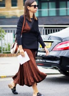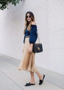 - If as an element of clothing to be combined with mules a skirt then it can be a pleated model up to about the middle of the calf.