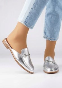 Options on a flat sole look much more elegant than clogs. Very often they are pointed or may have a rounded toe silhouette. Wearing such shoes is necessary in combination with certain elements of clothing.