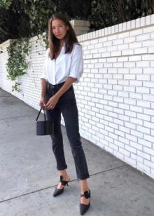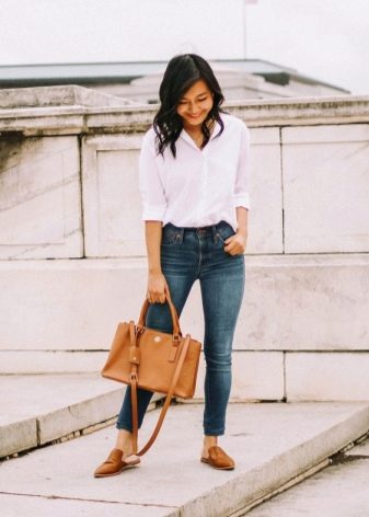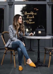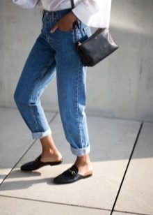 The length of jeans can be both classic and shortened. Mules are combined with small twists.