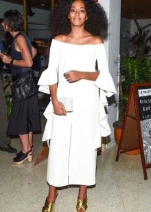 For an evening exit, mules are an elegant and very original option. You can combine them in an evening look with a dress, provided that the model has the appropriate heel. The length of the dress should be midi, and the fabric of which it is made flowing. A great option would be an evening jumpsuit made of silk fabric.