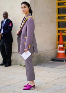 - The option for heels is suitable for combination with a suit, which consists of an elongated jacket, as well as straight trousers.