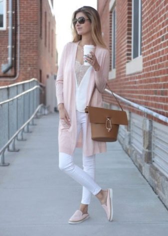 - Image where there is pink mules, as a rule, is not limited to one element of a pastel shade. A bag of the same delicate color, a cardigan or trench coat perfectly combine with shoes, creating a truly romantic look.
