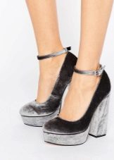 - Shoes made of velvet. Velvet is the most fashionable material 2016-2017. So you absolutely will not be mistaken by buying shoes from such material. The only thing is that they will have to be very carefully walked, because velvet is not the most practical material.