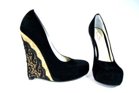 In addition to heels, there is also a wedge and platform. But for many fashionistas, they are not too fond of, so the designers developed the so-called combined models. In such shoes, only the front of the shoe has a platform. And behind, she goes into the heel.