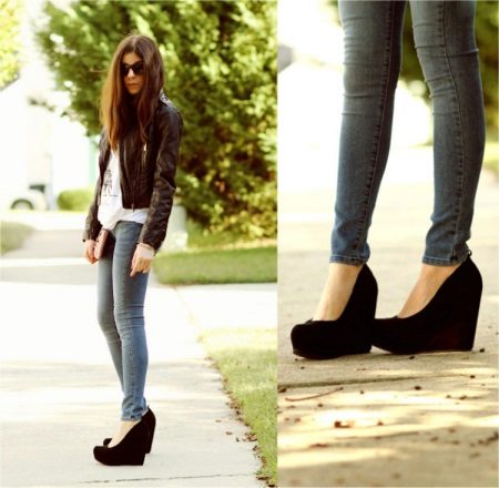But there are recommendations from stylists for some models. So, for example, classic boats can be combined with both an evening dress and a business outfit. And recently it has become fashionable to wear them with skinny jeans. Wedge shoes are more suitable for ethnic look and dresses. Shoes with thick heels or tractor soles fit perfectly in a set of clothes in the style of street style.