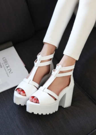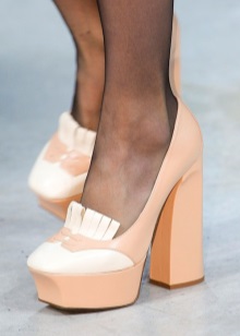 The reason for the popularity of shoes with thick heels and a platform was the combination of relative convenience and showiness in these shoes. Shoes with a powerful heel with a platform are much more convenient than shoes with a heel with a hairpin of a similar height, since due to the platform the rise of the foot can be lower while maintaining the desired shoe height, which means that the legs will not get tired so quickly.