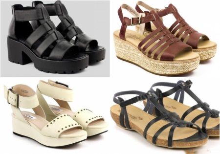 - Ankle boots - a hybrid of shoes and half boots. Ankle boots with a high stable thick heel and platform - an option that is now in trend. Such shoes can be worn not only in the off-season, but also in the summer. Summer ankle boots are made with an open heel and toe, as well as inserts from perforated, openwork, mesh materials;
