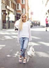 From trousers, you should choose simple models, you can slightly shortenand loafers, oxfords, or massive heels will complete your business look. As with skirts, it is best to avoid flared long trousers. The same applies to jeans, that is, wide models should be abandoned. But juggins, skinny, boyfriends, overalls and other tight-fitting models of different fit and height will always be relevant. Tractor-soled shoes and sandals will look good with shorts of both medium and short lengths.