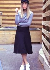A deliberately scruffy oversize dress, a shirt dress and a tunic dress are all part of a casual style, so they are suitable for shoes with heels and flat soles. More romantic and delicate models of dresses or skirts should be combined with shoes solely with heels. As for skirts, then maxi floor length should be avoided, since then the shoes will be hidden, but there are no restrictions in the models. Denim mini and knitted half-sun to the knee will look stylish with such shoes. You can combine a skirt with tops, T-shirts, tunics and sweaters, depending on the length of the product and the width.