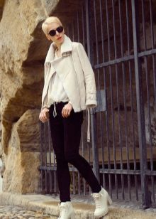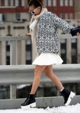 Some models of shoes can be easily worn in autumn or spring, so you should consider combinations with outerwear. Thick and high corrugated sole is suitable for straight coats and trench coats to the knee and above, leather and denim short jackets, parkas. In the cold season, it makes sense to wear tights, if the set consists of a skirt, dress or shorts, in which case it is better to choose simple models without patterns.