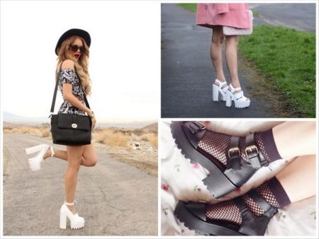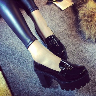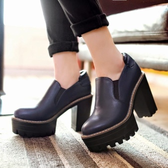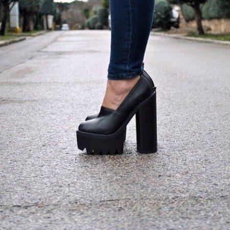 For starters, these are classic shoes with a separate sole and a distinct heel zone. To make the relief noticeable, the heel must be massive enough. To compensate for the heavy lower part, the upper one is not cluttered, light, neat. The shoes look fashionable, but bold and often rude, and therefore they are hardly suitable for working in the office with a strict dress code.