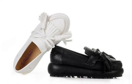 Sandals with an open nose and heels or one of these parts are found both on the heel and on the platform or wedge. Some models can be completely open, completely made of straps that reach a height, including the ankle. Flat corrugated sole is found in loafers, oxfords, and their main advantage is that even the “tractor” allows shoes to stay within the boundaries of a business look.
