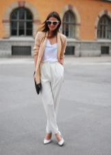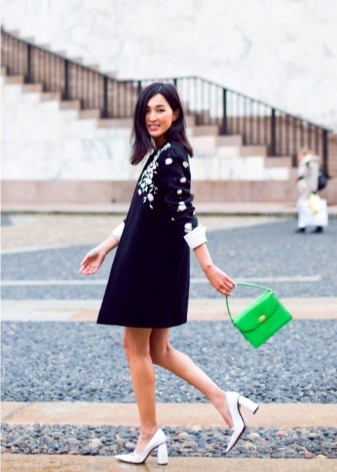 - It is better not to combine white clothes with white shoes. Such an outfit attracts too much attention and is associated with the image of the bride. It is better to choose shoes a tone or two darker than clothes, and diversify the bow with colored accessories.