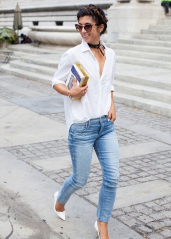 White high-heeled shoes are often worn in the summer, therefore, as a rule, they do not combine shoes with tights or stockings. Shoes blend perfectly with tanned skin, creating a wonderful natural contrast.