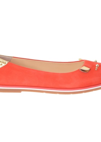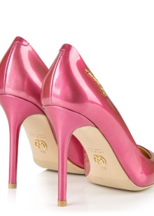 Delicate and neat ballet shoes of the Italian brand have a comfortable shape and are perfect for tall women. Models are not inferior to high analogues, they are perfect. A beautiful pair of fuchsia flowers with metal flowers is decorated on the side with gold letters of the company logo. She will add tenderness to both everyday bow and evening.
