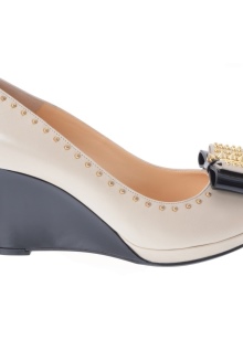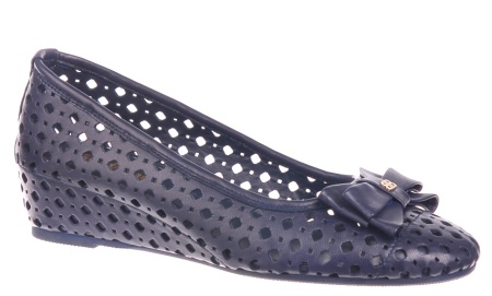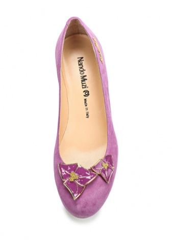 Perforated models differ in design features: not only the boat itself, but also the wedge are perforated. Gorgeous purple couples with a fringing on the top are decorated with a decorative multilayer bow with a gold buckle. The sole in tone basis has a small 1 cm heel. These shoes will complement any summer look.