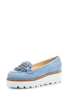 Options on the platform are suitable for those who focus on practicality and a small heel. The versatility of the line allows you to pick up a pair for a bright personality and for classic natures. Smoky blue shoes on a white platform look harmoniously on the foot.