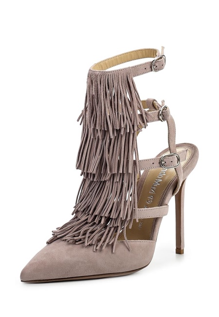 Open heel boats are often decorated with fringe from the base material. High sandals with several rows of straps look particularly elegant. The fringe located on each strap in the front makes the model exquisite. An open heel provides extra air to the legs. Such "companions" are perfectly combined with light dresses and sundresses of any length.