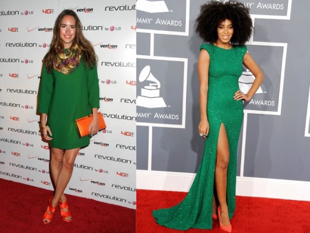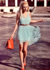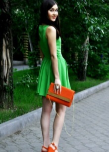 The most suitable shade of green, which successfully combines with orange shoes, is the color of the sea wave or delicate turquoise. If on your feet you plan to shoe shoes with light tones of orange, then you can experiment with dark green shades;