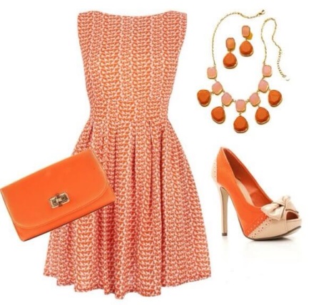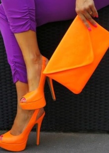Of course, you can try to bring together several shades (preferably no more than three), correctly and correctly placing accents. For example, starting with bright tangerine stilettos, continue the look with a concise and simple beige-orange dress, not burdened with jewelry, accessories and more.