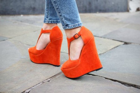 platform, wedge and all-all-all. Shoes with a slight rise are not only functional, but also practical. Even the simplest shoes on a neat platform, but in orange, will become an indispensable accessory for the new season;