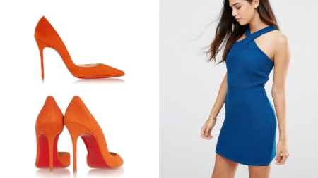 A delicate dress of deep blue can also be organically combined with tangerine stilettos;
