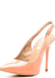 A pair of patent leather women's pumps, which are made in a universal beige color, can be considered a particularly popular product. The model includes a thin 11.5-centimeter long stiletto heel, as well as a pointed toe that makes shoes an excellent choice for an elegant and sophisticated bow.