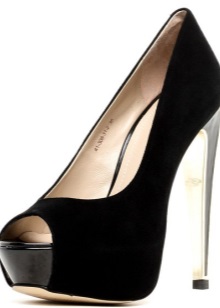 The main element of decoration is a kind of black patch on the heel of the product, which is a kind of continuation of the heel in the form of a loop. Shoes are made of genuine leather.