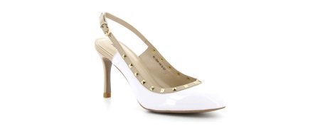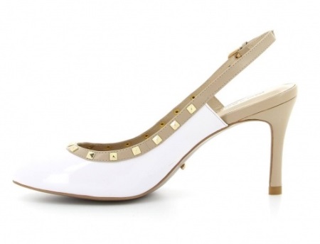 The Paolo Conte assortment provides an opportunity to choose a model from this year's trendy top - pumps and low and medium heels. One of the most popular products in this category is made in white. In this case, the heel and the border are neutral beige.
