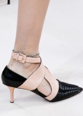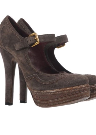 Classic Prada shoes in matte and patent leather or suede with stiletto heels fit perfectly into almost all stylish looks. The brand provides a choice of fashionistas traditional models with a rounded or sharp toe of flesh, pink, black, blue and blue. A toe of suede patterns can be decorated with textile flowers and bows.