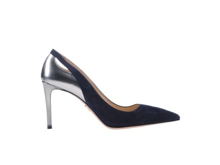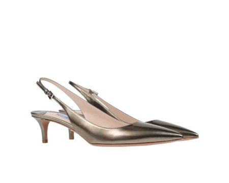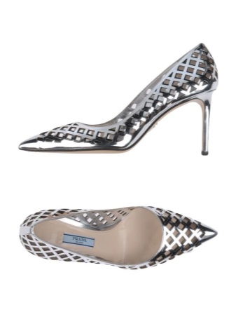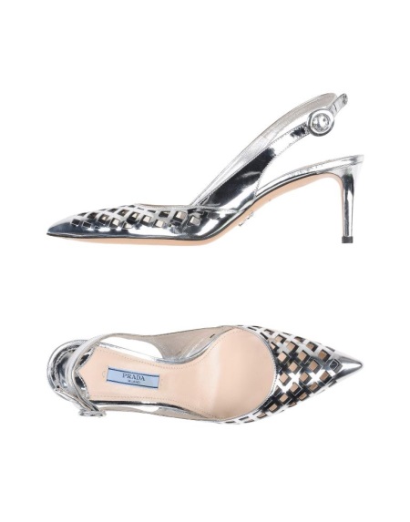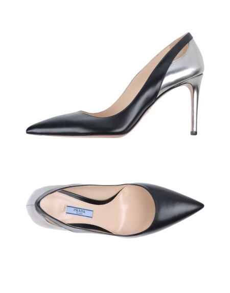 Pointed-toe Prada pumps with metallic heels look very sexy and feminine. The back of these models is painted in silver (metallic) color.
