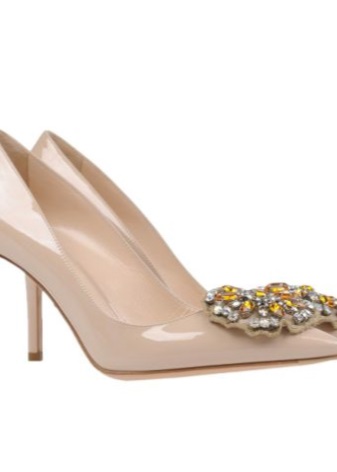- pointed-toed shoes with metallic thin heels;