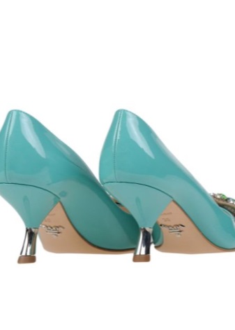 Leather patent leather pumps with an unusual geometric heel look very impressive! Often monophonic models equipped with such a bright detail are decorated with large multi-colored stones and appliqués. In such non-trivial shoes, any lady will look creative and elegant.