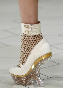 - Shoes with transparent soles. Original models with a plastic sole creates a feeling of soaring above the ground. The top of such models can be absolutely anything, it all depends on the creative approach of the designer.