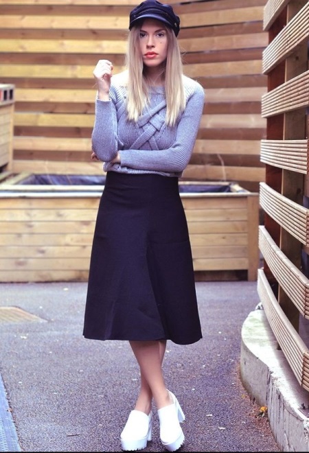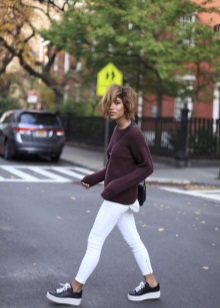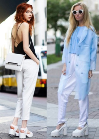Creepers with a white sole are the brightest and most attractive detail in a women's outfit, so do not load the image with additional accessories. These shoes look great with straight skirts, skinny jeans and cropped trousers.