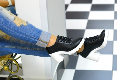 Every fashionista wants to look fashionable and sexy in stylish and modern shoes. Original shoes with an aggressive and high sole perfectly cope with this task. Such models are not only comfortable to wear, but also visually slim and make the girl taller. To date, shoes with a tractor sole in white and a contrasting upper part are rightly recognized as the most popular.