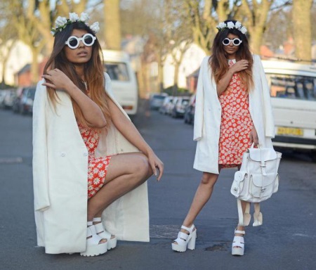 Sexy shorts and chiffon skirts in combination with creepers will create a very bright and unusual look.