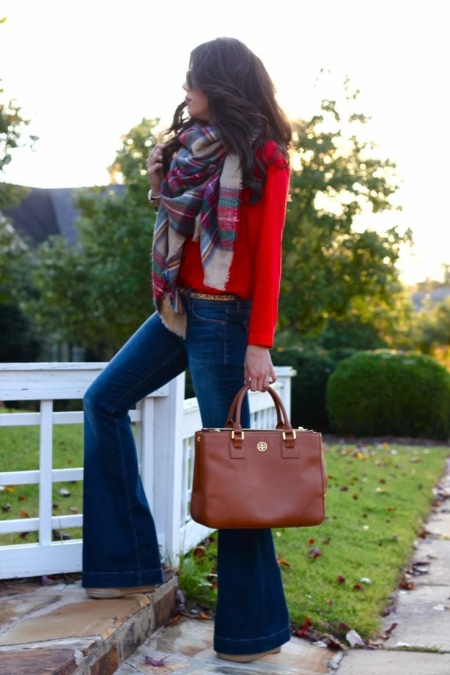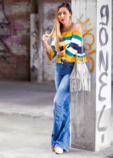The popular autumn fashionistas casual prefers a looser jeans style: boyfriends, mom jeans. Flared jeans are no less popular, although they like a more thorough selection of ensemble items.