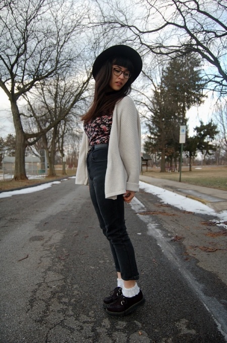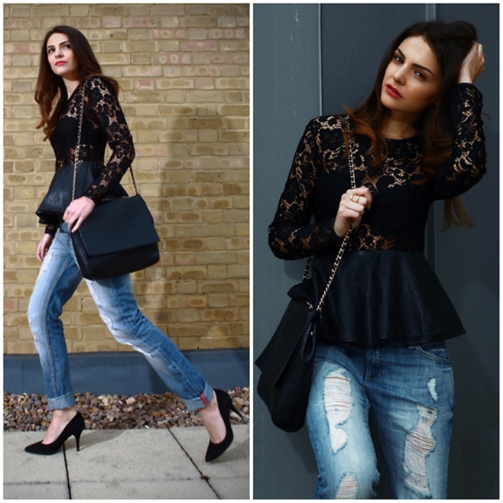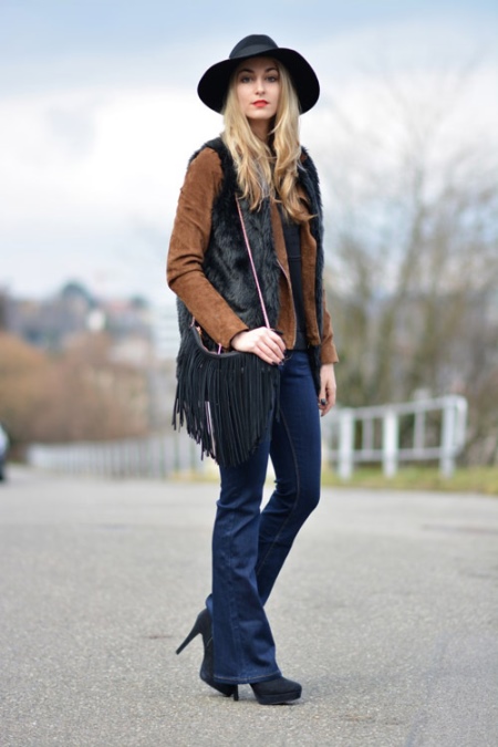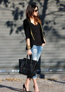 Glamorous gothic does not go out of style. Jeans with metal spikes, square rivets, oval plaques on belts, rhinestones and multi-colored stones are very popular. The eccentric style of the fatal beauty drives many men crazy. Black high-heeled sandals will make a harmonious and fashionable bow with narrow blue skinny, a short lace top in black or a cropped brown jacket with a floral print.