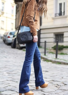 Leather moccasins can make up an equally interesting everyday trend with flared jeans. They are less official, so they allow a different game of color.