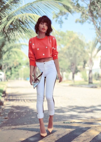 Stylists do not recommend combining high heels and varnished models with tight-fitting products.