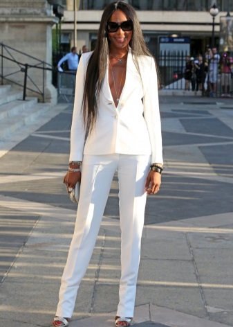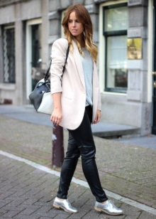 A black suit looks quite dramatic, but if you wear it with silver shoes, then contrast will immediately appear and the costume will come to life. This outfit can be worn with a metallic blouse. And do not combine silver items of the same shade, on the contrary, they should be different.