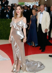 An excellent solution would be a silver decor for a dress. It can be exquisite lace or delicate beadwork.