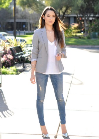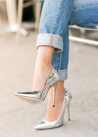 Many girls prefer to wear jeans. Silver shoes will be a great addition. To complete a fashionable look, it is enough to choose jewelry in the tone of shoes.